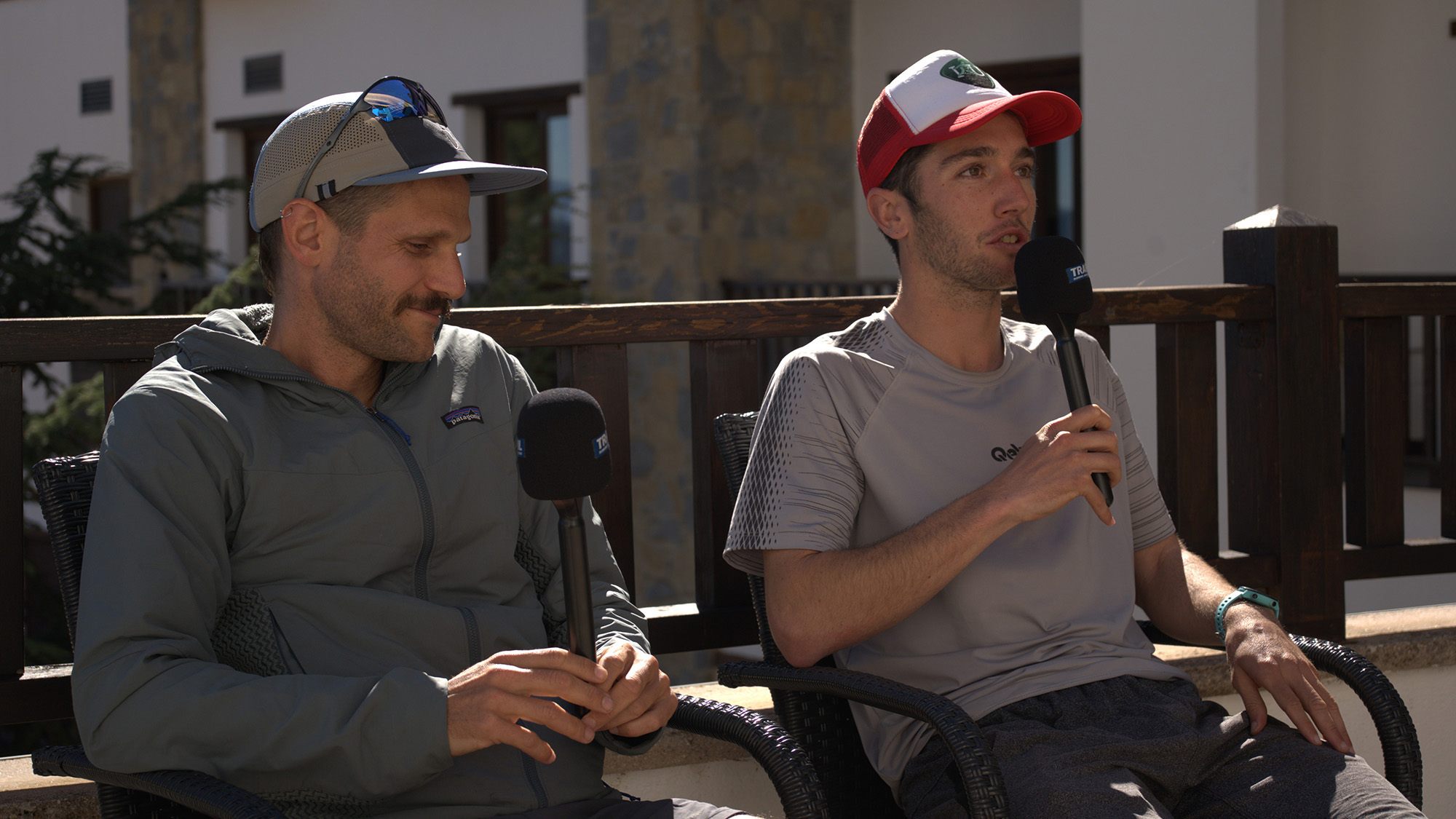 Charlamos con dos de los integrantes del equipo de Vertical Uphill en la previa del mundial de Trail y Montaña en Canfranc (España) 2025.