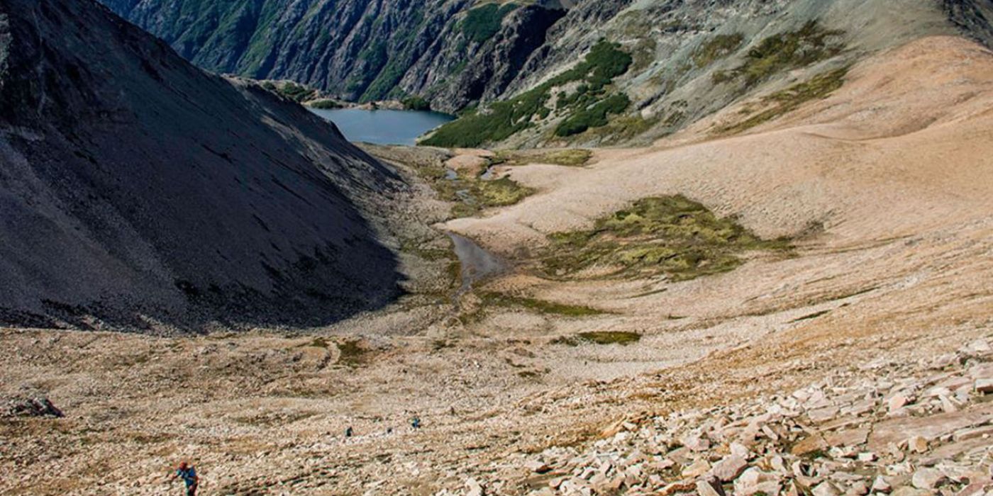 Resulta que el viejo Mariano venía esperando al otro bonkeado del grupo, JP, y por eso no llegaba más. Tengo un par de escenas perdidas acá porque la pase muy, muy mal en el Bailey Willis con el calor. Y para bien de todos, voy a saltar derechito a la mitad del infame lajero del López. Mientras buscaba de donde agarrarme para no irme al carajo, escucho los gritos de un infeliz que venía perturbando la tranquilidad de todos. Claramente, el porteño inmundo de Barracas estaba abajo y con el eco de las preciosas montañas se escuchaba todo. Le grite un saludito cariñoso y entonó la primera frase de Buenos Días Palomar de los Piojos a los gritos para que me deleite con su inmunda voz de viejo arruinado.